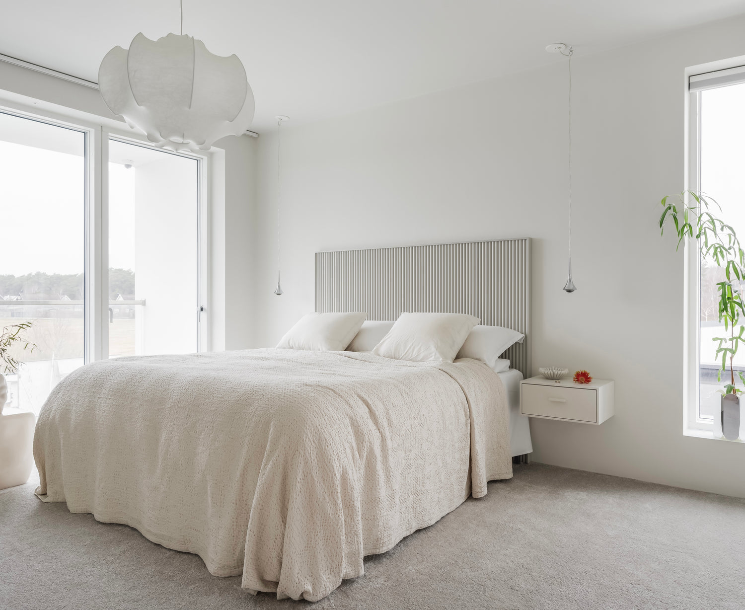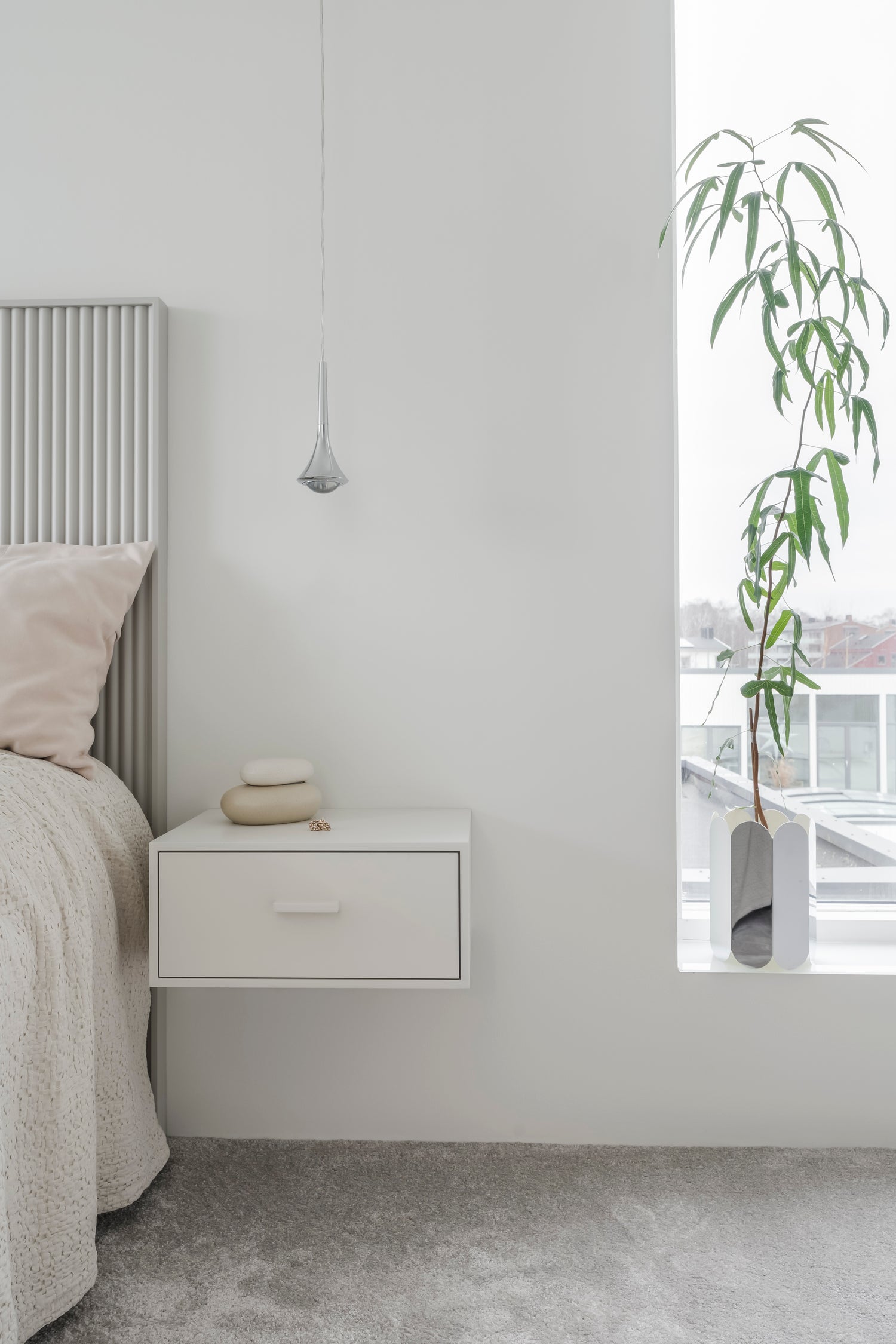 En minimalistisk design framför sängen